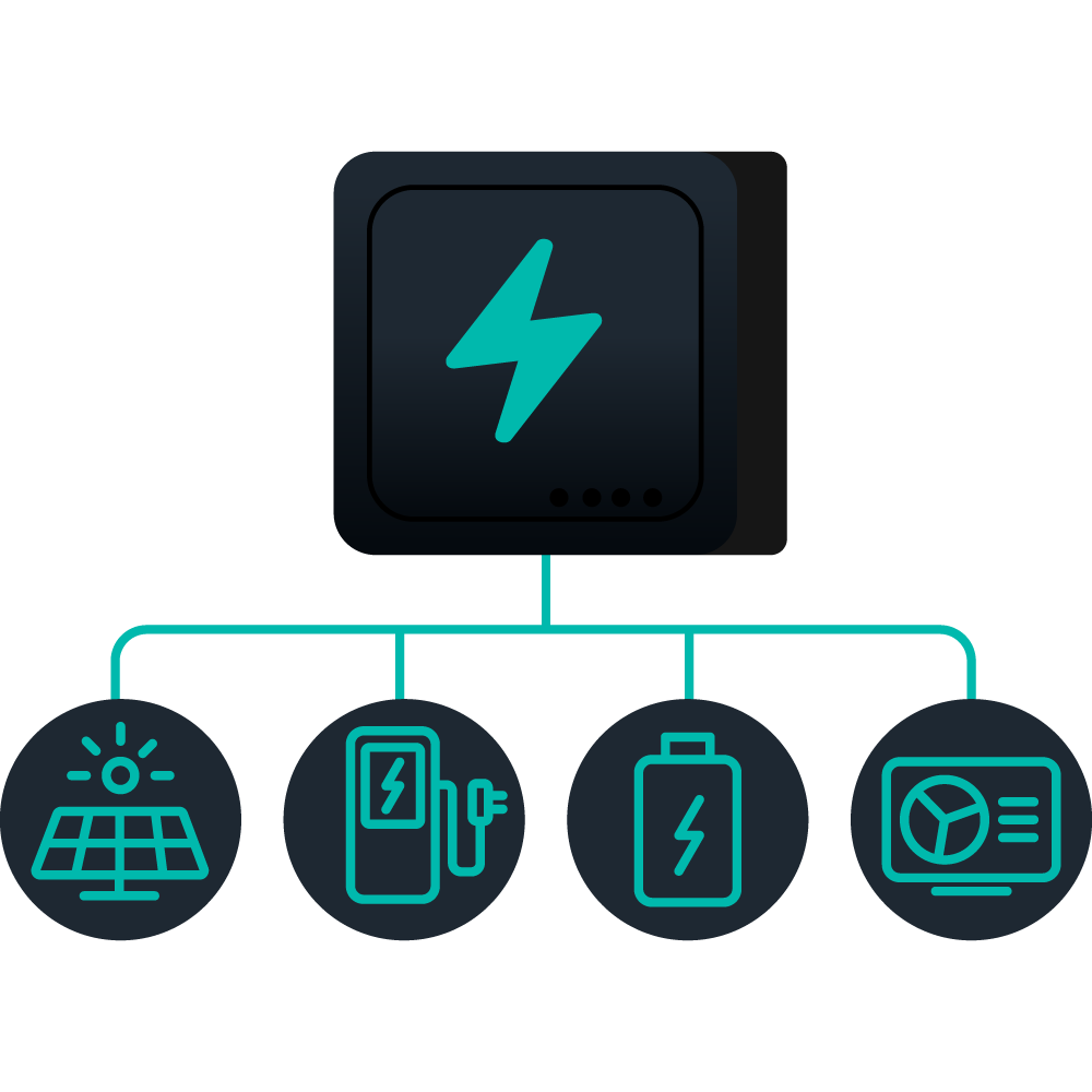 Automatically connects to and optimizes your solar panels (PV), battery storage (BESS), EV charger and heat pump.